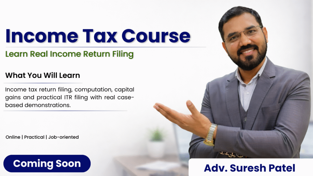 Learn income tax return filing, computation, capital gains and practical ITR filing with real case-based demonstrations.